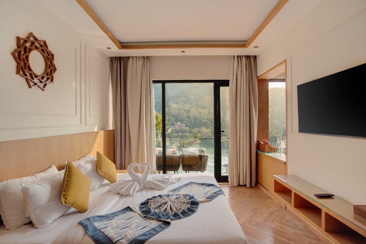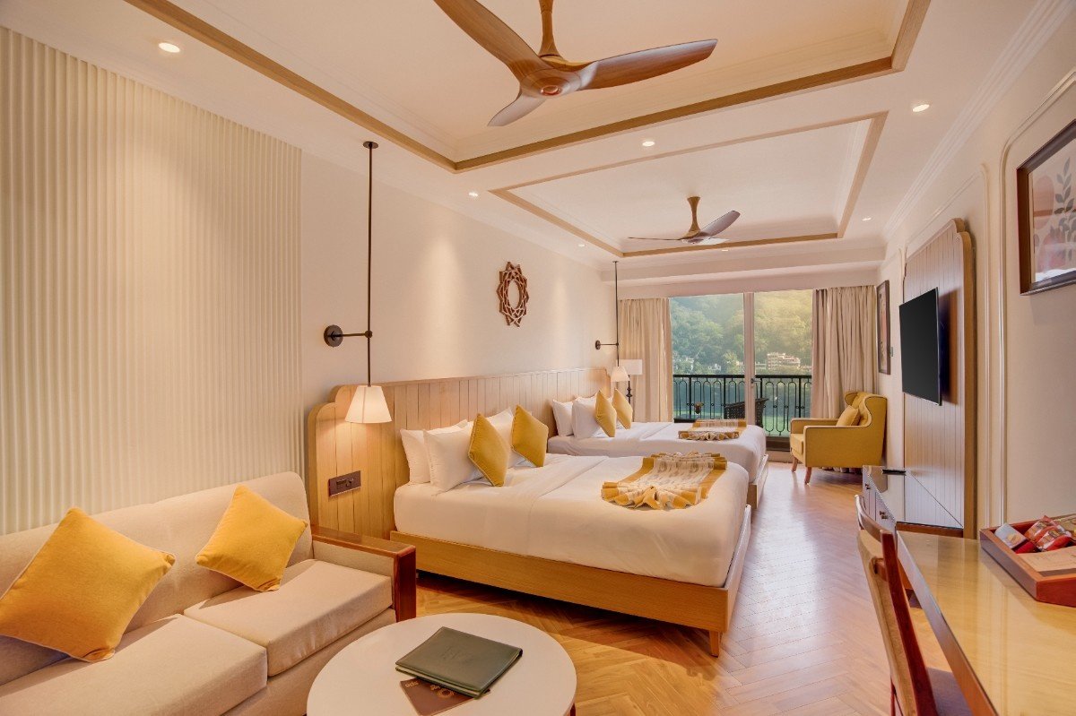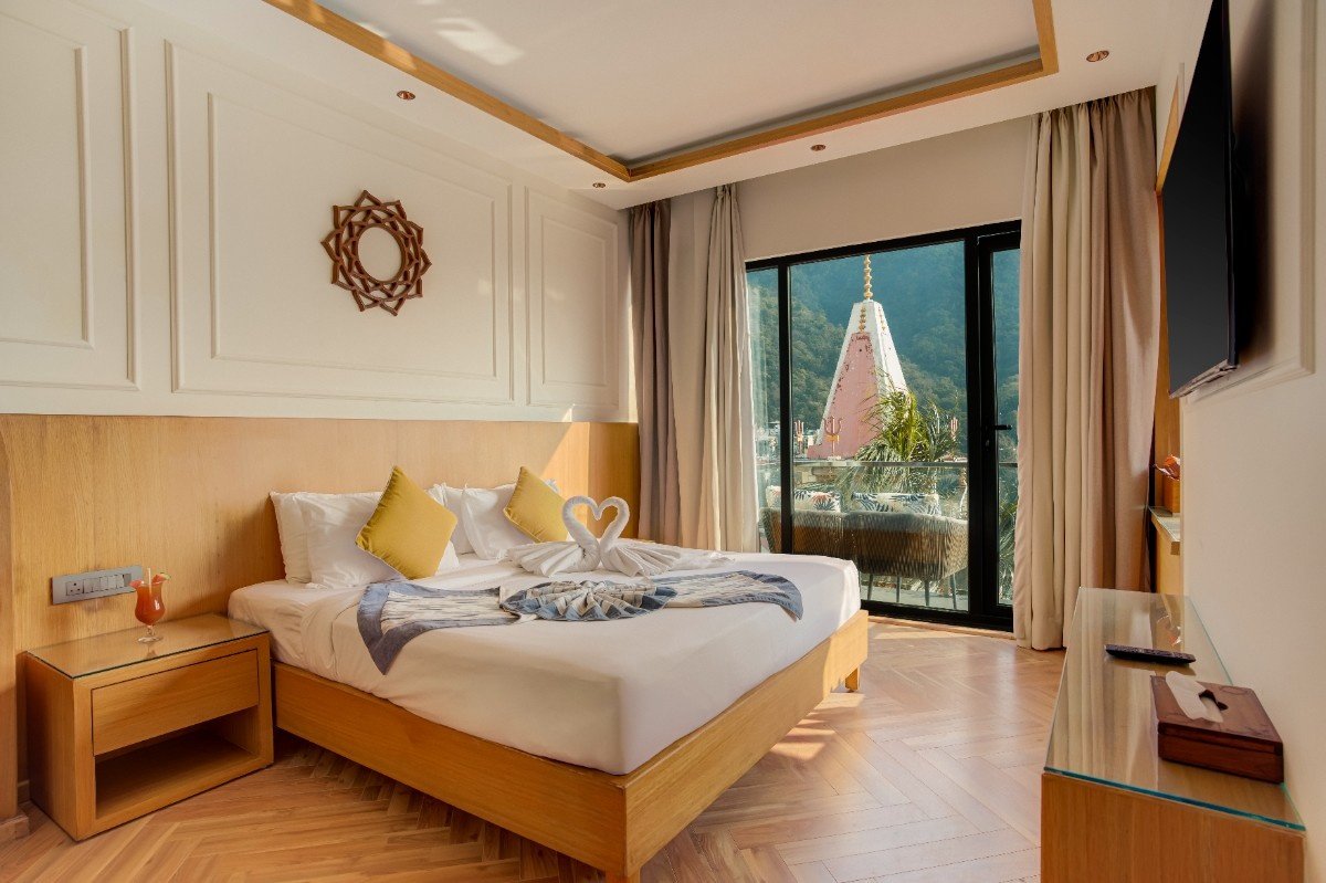 The Executive Ganga View Room at Hotel Divine Resort & Spa Rishikesh is designed with the goal of allowing you to feel calm like never before. Combining luxury with nature creates a room that will take your mind, body, and spirit to levels never reached before. You can awaken to the river Ganga's beautiful views in the morning, and enjoy a gentle breeze while surrounded by an environment of spirituality and tranquility.₹ 16,999 per night -