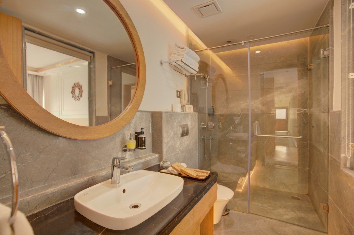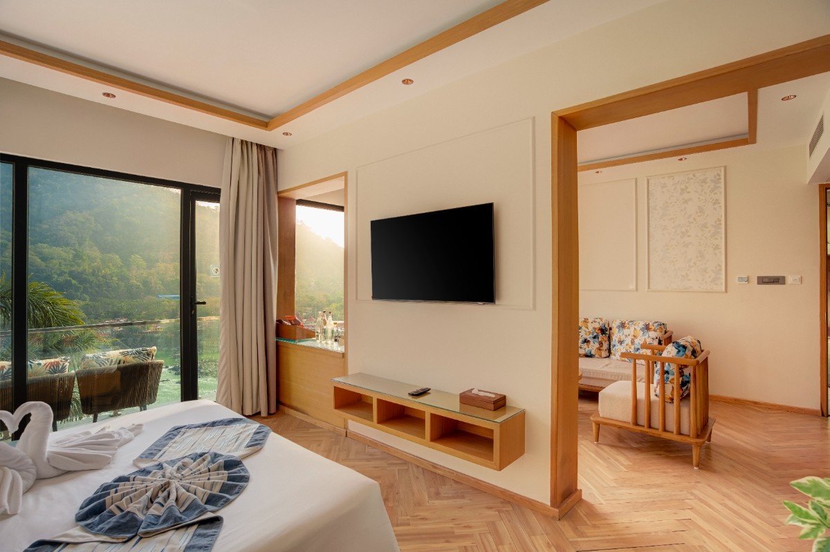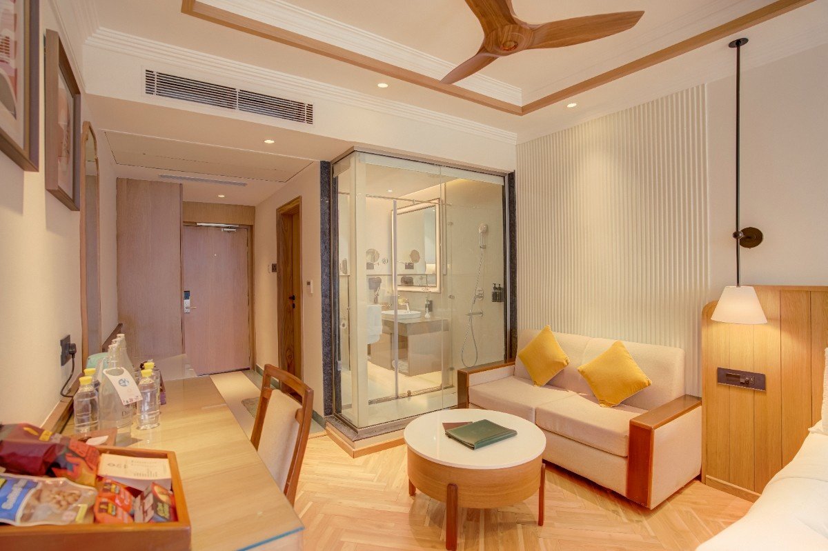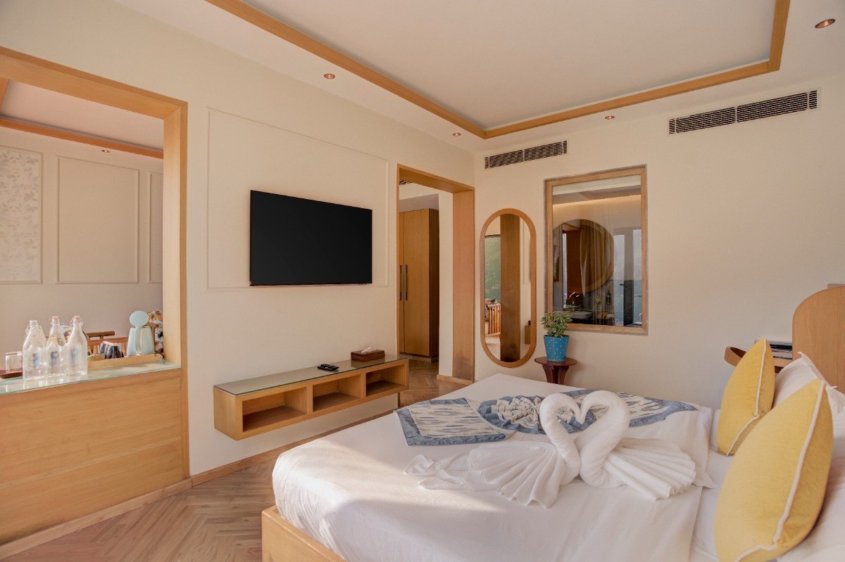 The Executive City View Rooms at Hotel Divine Resort & Spa offer stunning views of the city and are designed for comfort, sophistication, and luxury for both recreational and business visitors. The interiors of these accommodations are classy and modern and include luxurious items such as plush beds, state-of-the-art LED TVs, and elegant bathrooms equipped with bathtubs and showers. A calming atmosphere and nature-based décor help create a tranquil atmosphere that enhances your experience while staying here₹ 14,999 per night -