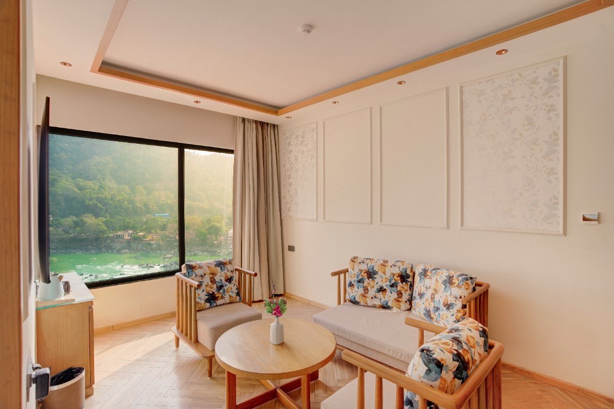 The Royal Room in Divine Resort & Spa offers timeless elegance to its guests. For those who have an eye for refined luxury and experience a regal stay, treat yourself to the Royal Room. The Royal Room is larger in size, has a beautiful layout and view of the Holy Ganges, offering an exclusive ambience along with comfort. With accommodations for two adults and two children, this room is suitable for couples or families, as well as vacationers, spiritualists, and those seeking a luxury escape from reality.₹ 22,999 per night -